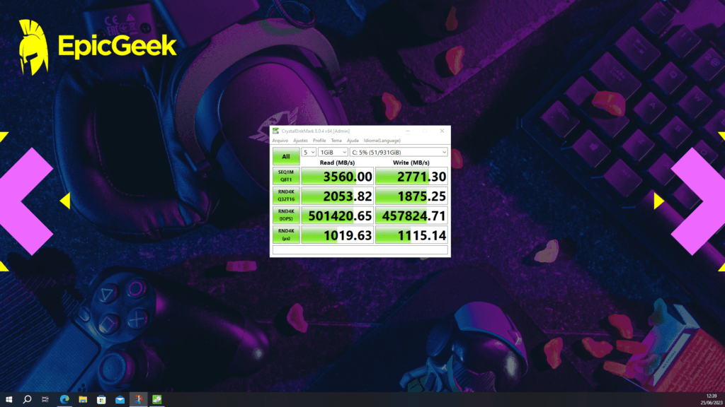 Para os benchmarks citados acima, foi utilizado o seguinte setup, acompanhado do SSD WD Blue SN570 como disco principal, responsável por armazenar o sistema operacional e os programas utilizados no teste.