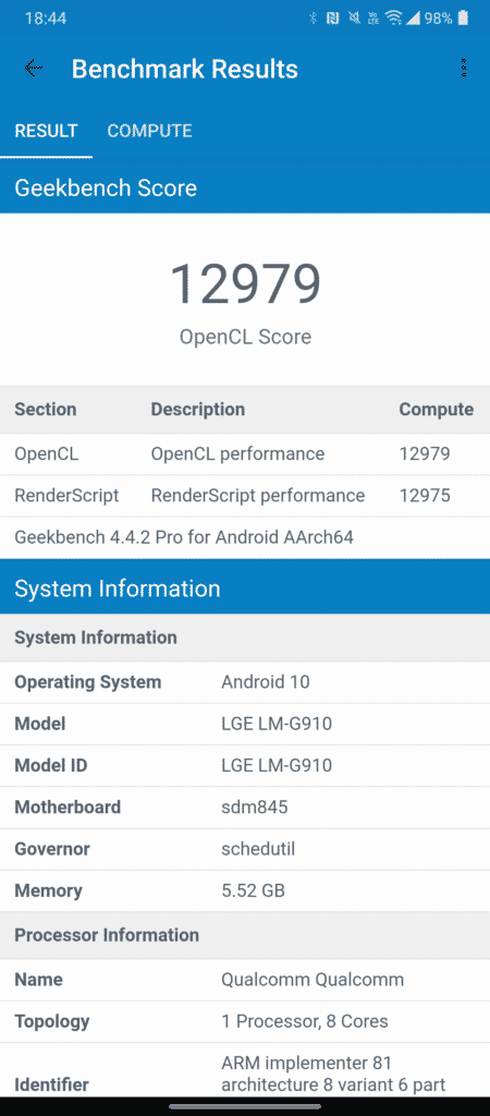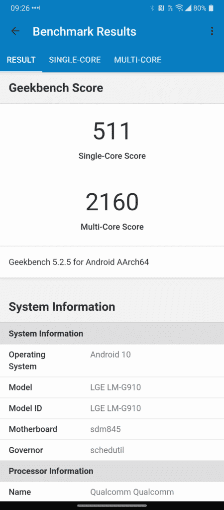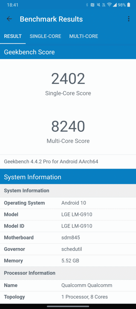 Felizmente porém, a suspeita nesse caso não se confirma, mostrando que a LG foi muito hábil e competente a fazer com que o Android 10 e o Snapdragon 845 consumam de forma coerente a bateria de 4.300 mAh.