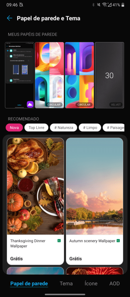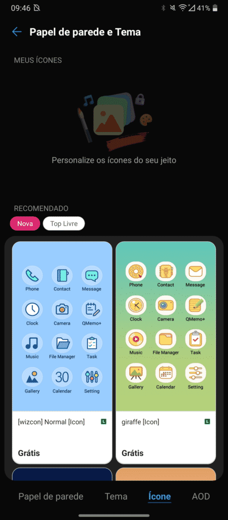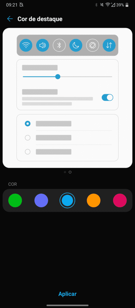 Um ponto bacana de se citar aqui é que o OS segue oferecendo boas opções de personalização, sendo possivel alterar as cores principais da cortina (saindo do verde e optando por outra cor), temas, ícones e mais.
