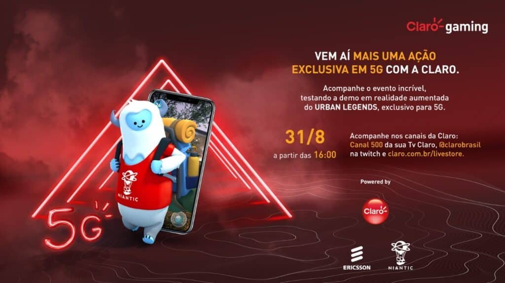 A Claro, em parceria com a Ericsson e a Niantic, anuncia mais um marco em sua jornada de evolução no 5G. Na terça-feira (31), às 16h, durante uma live, transmitida direto dos estúdios da Claro Live Store, a operadora apresentará a primeira aplicação de 5G Standalone (5GSA) em uma experiência real de gaming, com uso de Realidade Aumentada (RA).