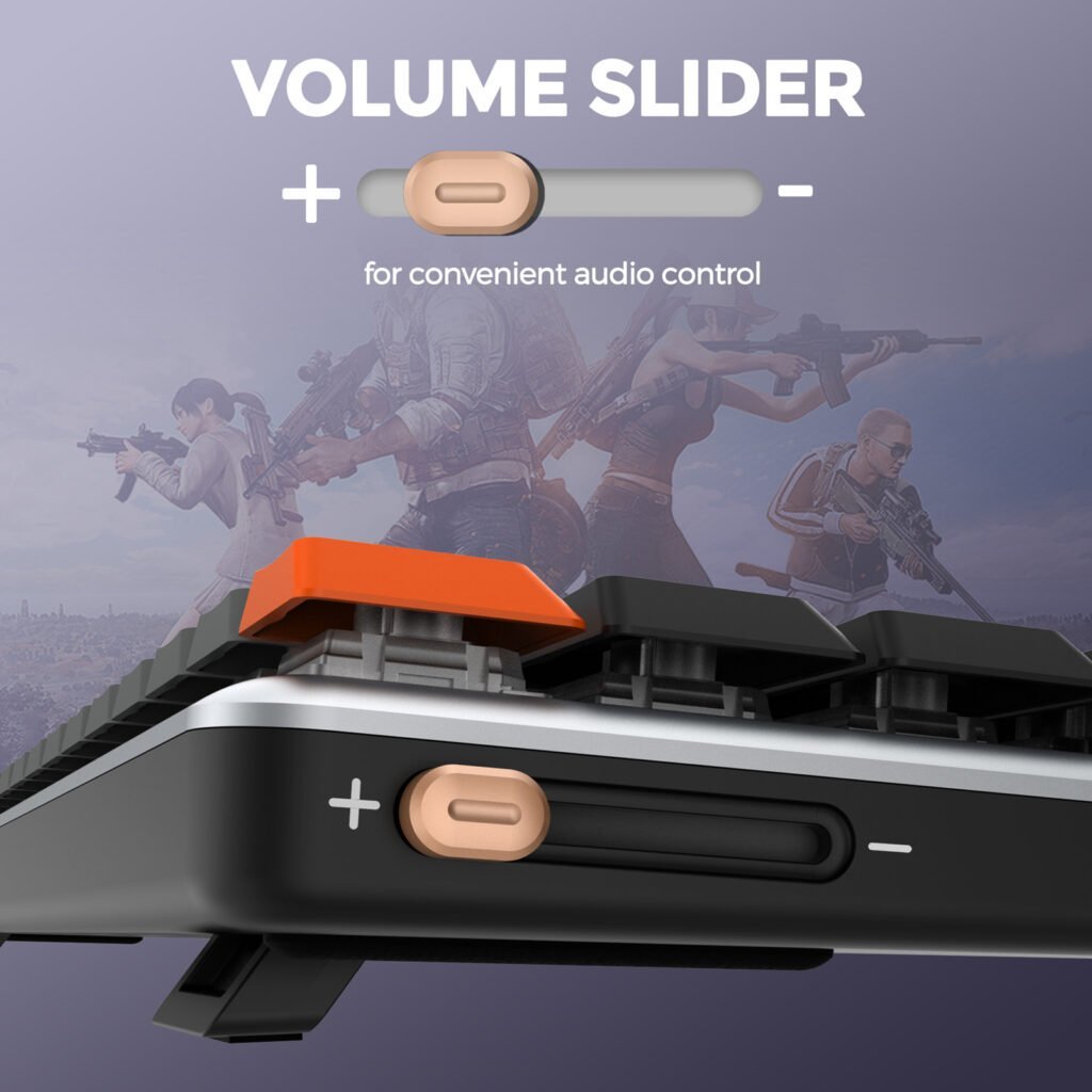 Para fechar, vale a pena aqui citar que o teclado conta com Switch vermelho (o que possivelmente significa melhor resposta em jogos), chave de regulagem deslizável na lateral para volume, troca de sistema (Windows ou macOS), pés antiderrapantes e, no caso do cabo USB-C, acabamento trançado com 1,8m de extensão.