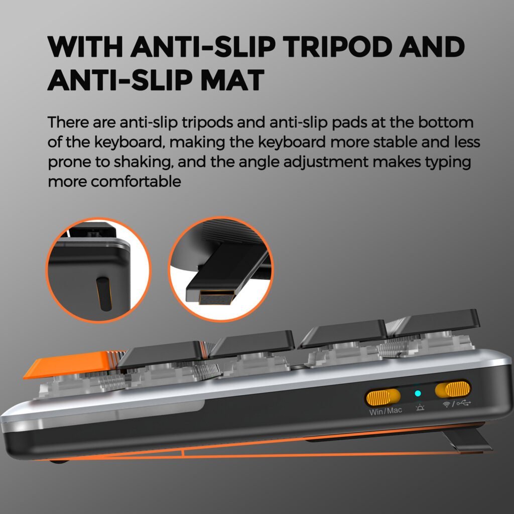 Entre as características que valem a pena citar aqui quando falamos do EKSA EK3000, temos a confirmação de que o novo teclado compacto oferece 3 modalidades de conexão (com cabo USB-C, com dongle USB-A ou Bluetooth), compatibilidade com macOS e Windows, bem como a esperada iluminação RGB.