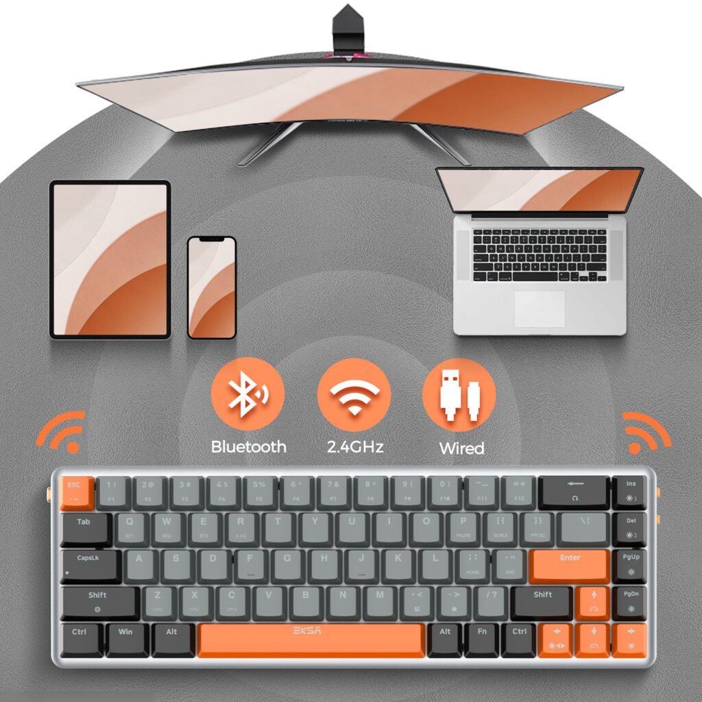 Com formato compacto (são 68 teclas ao todo), o EKSA EK3000 é o primeiro modelo a chegar no segmento de teclados da marca e mira em especial aqueles usuários que querem ocupar menos espaço no setup e renunciam à área numérica.
