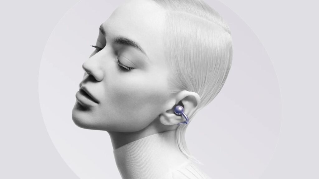 Primeiro do mercado nacional a chegar com essa proposta, o Huawei FreeClip aposta no design chamado Open Ear que, como o próprio nome entrega, deixa o ouvido aberto em oposição aos tradicionais intra, o que deixou o dispositivo com cara de piercing orbital, próximo ao canal auditivo.