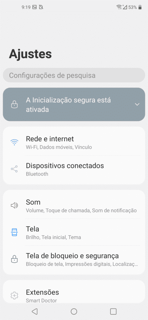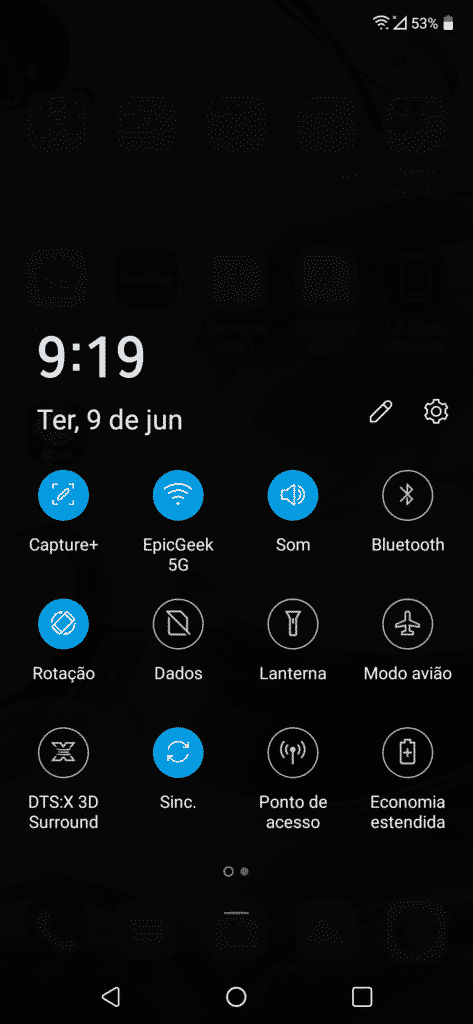 - Sistema operacional: LG UX baseada no Android 9.0 Pie