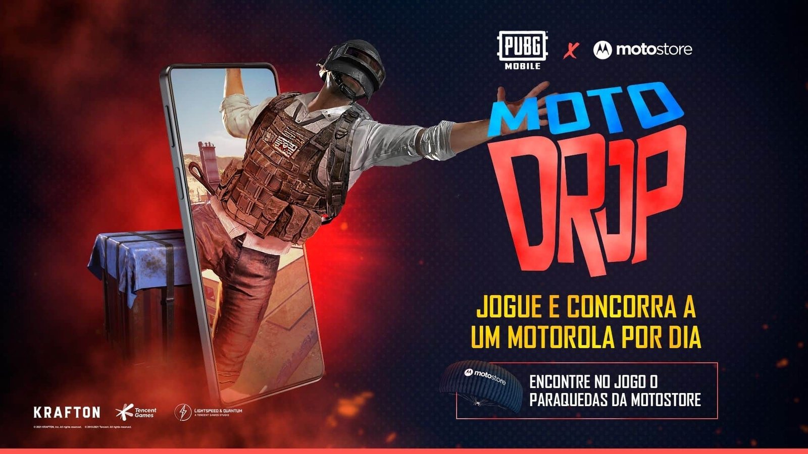 Dessa vez, além dos sorteios diários até o mês de fevereiro, quem visitar as Motostores – as lojas-conceito da Motorola – e comprar um celular, pagando mais R$1, ganha uma almofada em formato de Capa3, o icônico capacete de proteção de alta precisão do PUBG MOBILE. A ação contempla os modelos, moto g31, moto g71 5G, motorola edge 20 (lite, 20 e pro), moto g200, alguns dos modelos mais recentes da Motorola no Brasil. Além disso, dentro do jogo, os participantes poderão realizar desafios e resgatar paraquedas das Motostores.