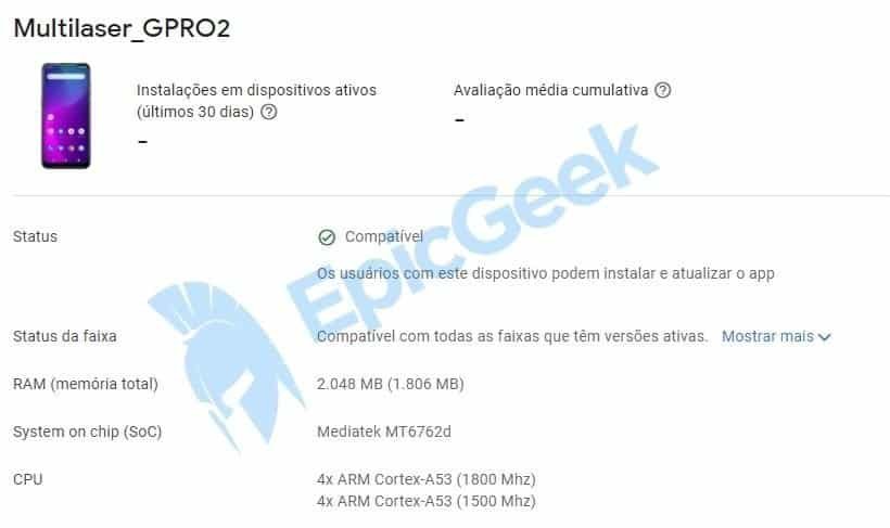 Sabendo disso, resolvemos garimpar o Google Play Console para nossa felicidade, localizamos ele e descobrimos que o chipset embarcado é o MediaTek MT6762d, também conhecido como MediaTek Helio P22 que já vem insistindo em se manter vivo no mercado brasileiro.