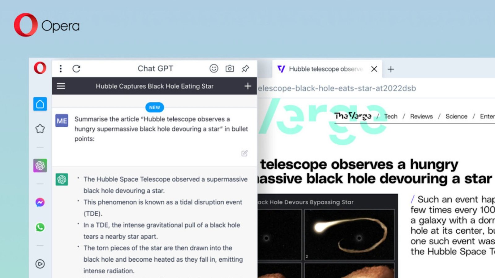 Novos serviços baseados em IA estão reformulando o que os produtos podem fazer e o que os usuários esperam. O interesse em serviços de IA, por exemplo, aumentou com o ChatGPT recentemente ultrapassando 100 milhões de usuários em tempo recorde. A próxima integração de IA do Opera segue o histórico do navegador de fornecer aos usuários acesso direto às plataformas mais procuradas da Internet, como TikTok, Telegram e WhatsApp.