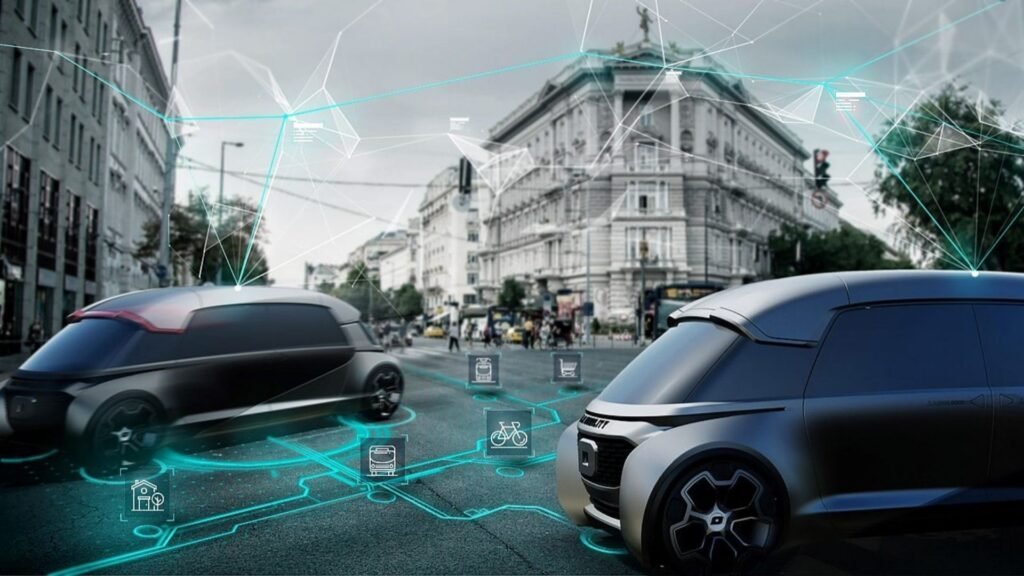 No Transporte: veículos privados e públicos, conectados em tempo real com as Cidades Inteligentes e suas múltiplas infraestruturas; ruas, avenidas e estradas inteligentes, melhorando a segurança, fluidez e eficiência dos transportes e usuários; veículos autônomos mais rápidos, confiáveis e seguros, trocando grandes quantidades de informações e executando suas missões, em tempo real, em seus ecossistemas.